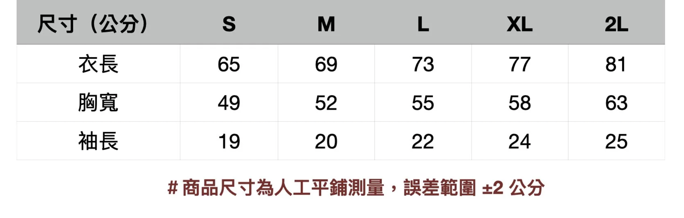 實穿尺寸參考