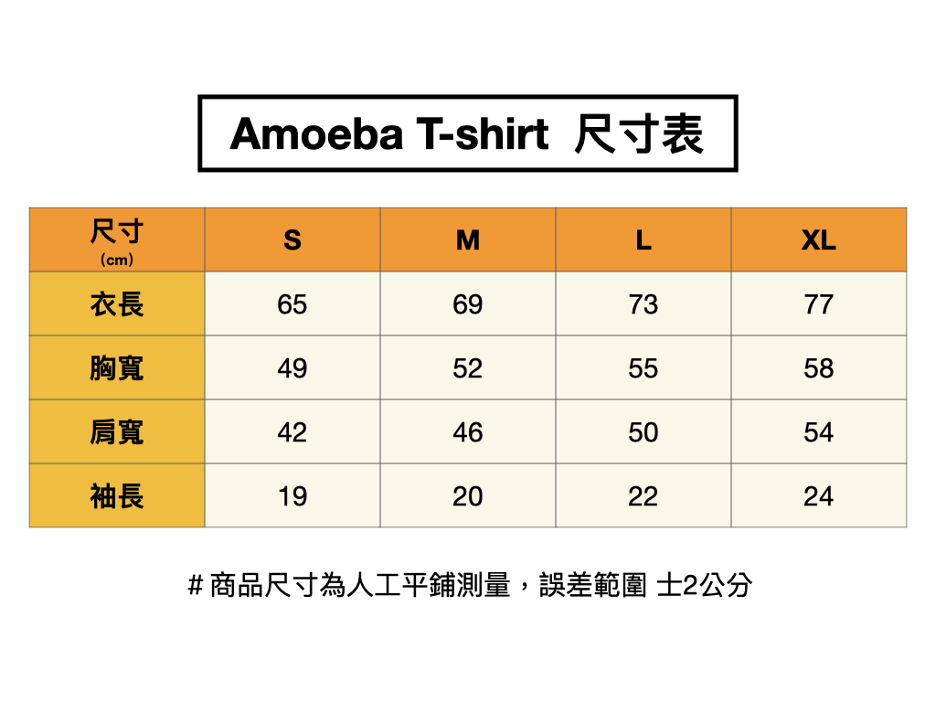 *註:T-Shrit 顏色及尺寸因電腦螢幕色差及手工測量,可能會有些許誤差,僅供參考。商品以實物為準。