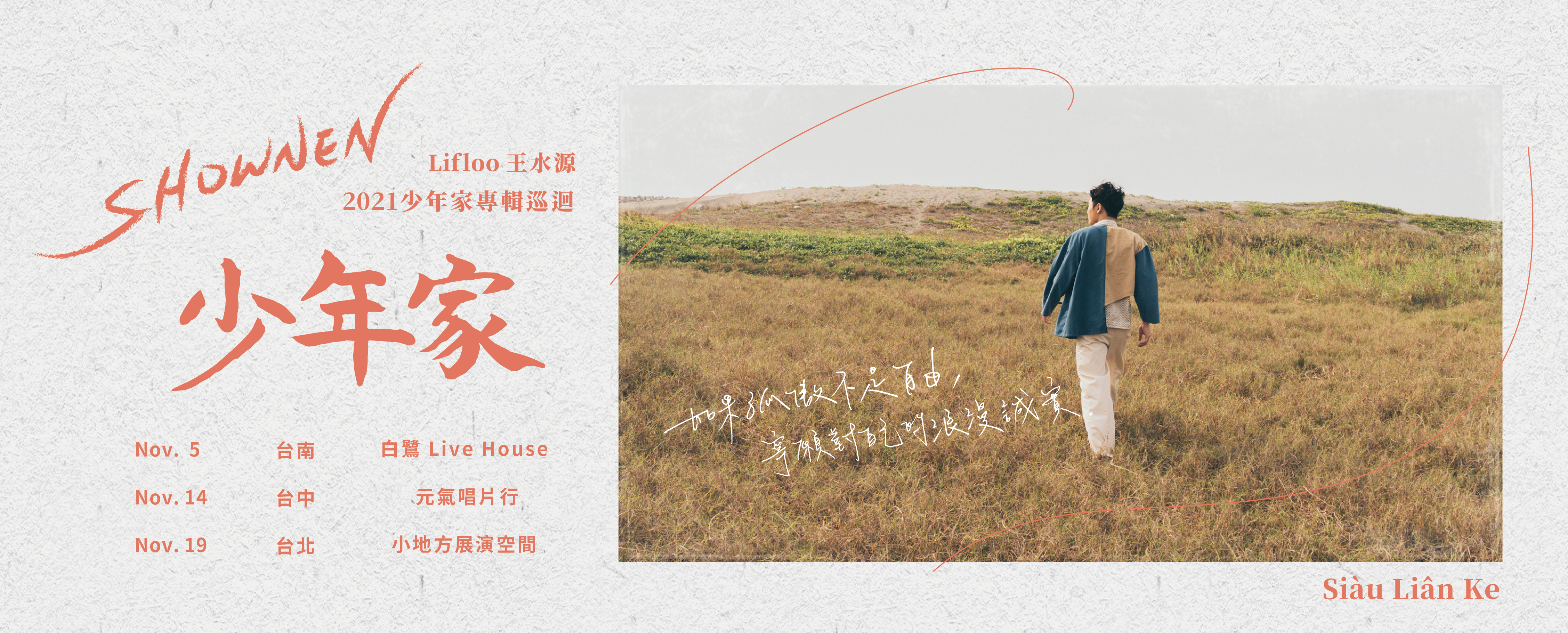 ⾝為少年呀,不論是吹風天或下雨天,我都想在⽩天做夢。答案⼀定只在⾃⼰⾝上、不假外求,如果要與世界碰撞,不需要任何理由,但需要⼀個準備好的⾃⼰。⾄少也相信 life is so beautiful,要⽤⾃⼰的做法,才不信別⼈那⼀套,因為對⾃⼰誠實,就是⼀件最浪漫⼜⾃由的事。